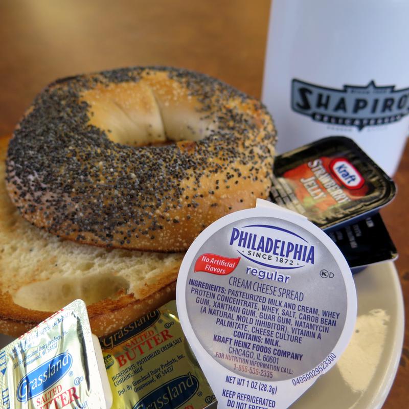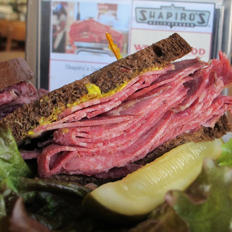 Whole and half available on most items • Choose your Bread: Shapiro's Famous, Hand Cut Rye, Sourdough, Wheat, White, Marble Rye, Pumpernickel, Onion Bun, Egg Bun, Poppy Seed Hot Dog Bun, Bagel +$1.00, Croissant +$1.45, Shapiro's Gluten-free Bread • Toppings: Lettuce, Tomato, Onion, Mustard - Spicy Brown or Yellow, Ketchup, Mayonnaise (no charge) • Cheese: Swiss, Muenster, Provolone, Colby-Jack, American +$0.80 / each • Chopped Liver Schmear +$2.65