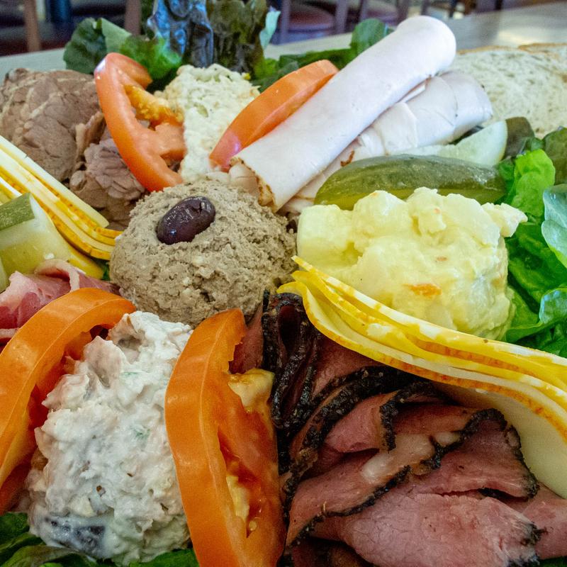Deli by the pound, whole cakes and pies, sides by the quart.